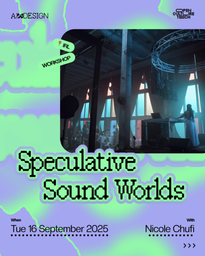 The "Speculative Sound Worlds" workshop was hosted by AIxDESIGN and Thunderboom Records as part of Open Culture Tech 2.0, supported by Cultuurloket DigitALL in collaboration with Sound & Vision, Superposition, Wij Doen Dingen, Bureau Moeilijke Dingen, Bedrijf de Liefde, Chagall, and Wesley Hartogs.